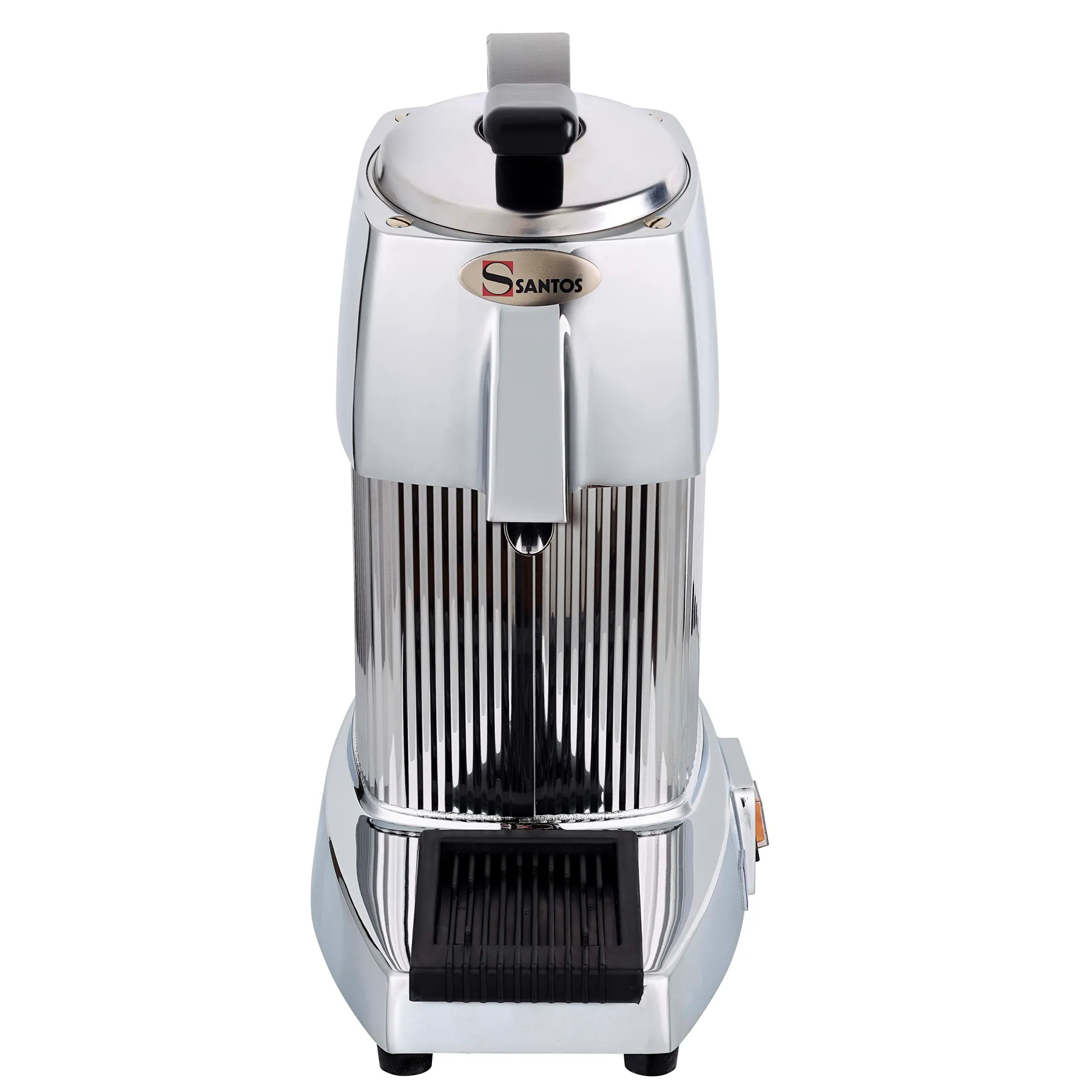 Die Santos Saftpresse Nr. 10 eignet sich bestens zum Auspressen von Zitronen, Orangen und auch Grapefruits mit bis zu 30 Liter in der Stunde. Durch die angenehme Optik dieser Saftpresse integriert diese sich perfekt im Frontbereich von Theken und Bars oder auch zur Selbstbedienung zur Befüllung von Gläsern am Buffet. Ein sauberes Arbeiten gewährleistet der Druckhebel und dank des Spritzkegels mit eingebauter Zentrifuge erreichen Sie das Maximum aus jeder Frucht. Arbeitssicherheit geht vor und so schaltet sich das Gerät automatisch aus oder an, wenn der Drückhebel geöffnet oder geschlossen wird. Die Reinigung der Saftpresse Nr. 10 ist einfach gestaltet denn Saftbehälter, Spritzkegel und die Pressscheibe lassen sich ohne Werkzeug lösen und können in der Spülmaschine gereinigt werden. Die abnehmbare Saftschale der Schleuderkorb und Presskegel bestehen aus pflegeleichten Edelstahl und sind abnehmbar. Der Gehäusesockel- & Oberteil besteht aus Aluminium.
