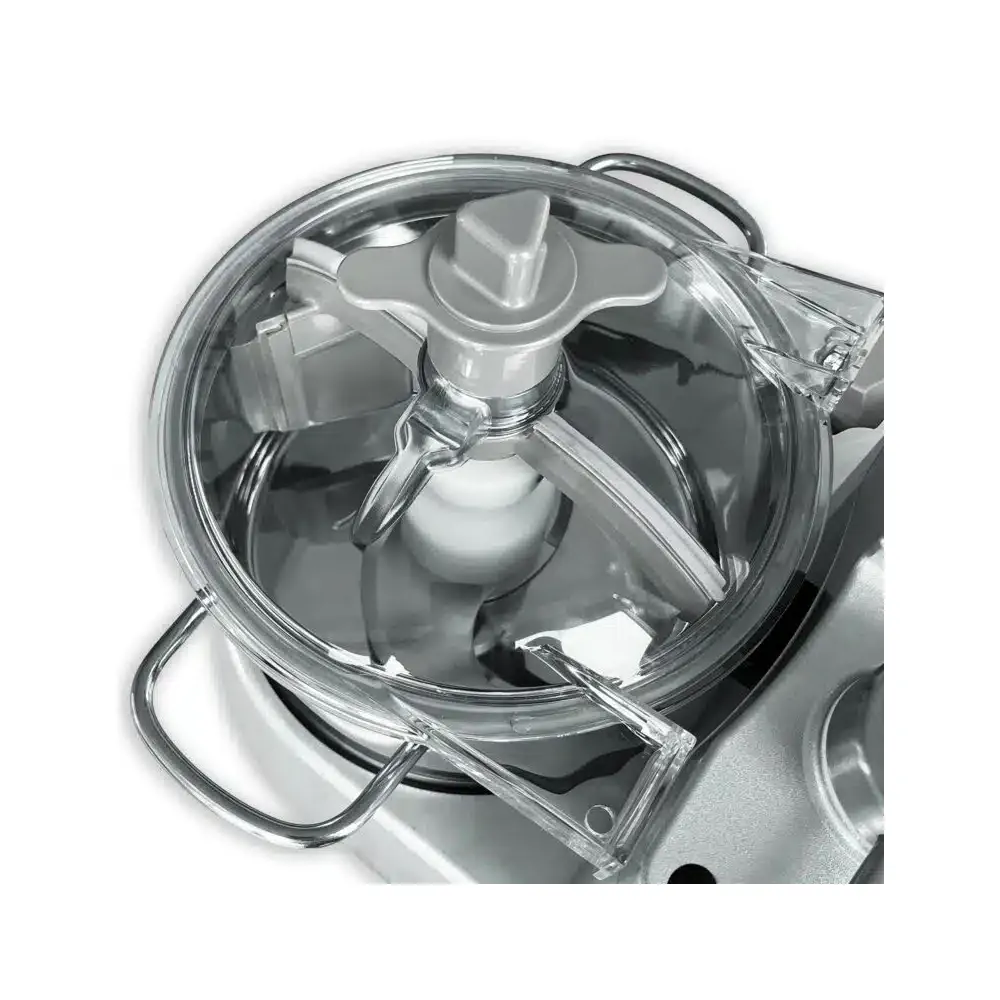 Mit diesem Cutter gelingt die perfekte Verarbeitung von Gemüse, Kräutern, gekochtem Fleisch, Fisch, Käse, Nüssen etc. in verschiedenen Feinheitsgraden. Des Weiteren ist sie auch bestens zum Pürieren von Speisen geeignet.